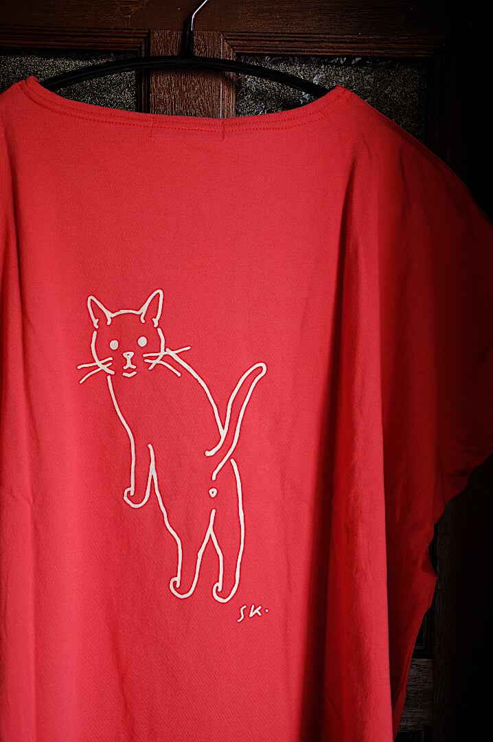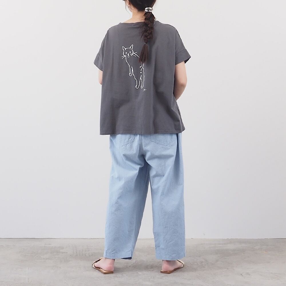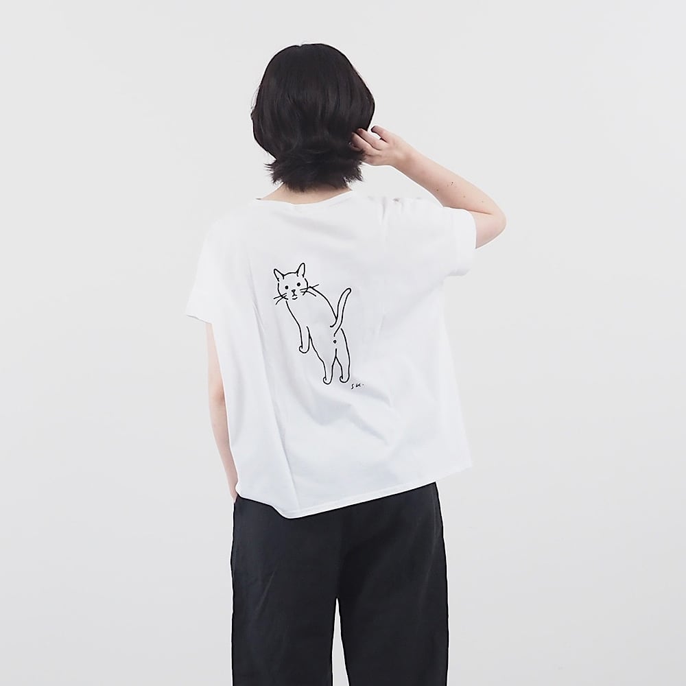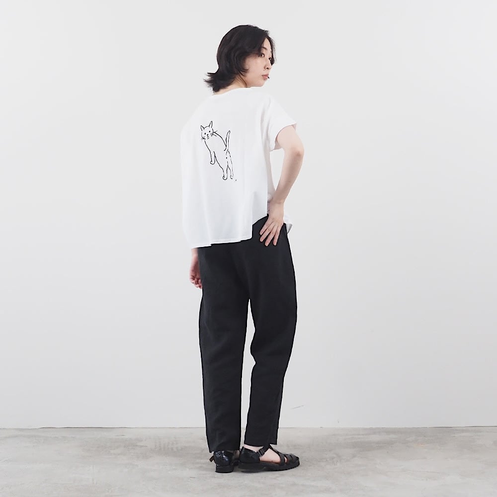 【日本製】NARU(ナル)小泉さよ様コラボ ナチュラルソフト天竺 振り返り猫コンフィーシャツ