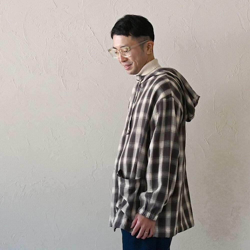 陰影を表現した美しいオンブレチェック柄が、個性のある秋冬のパーカースタイルに仕上げてくれます。