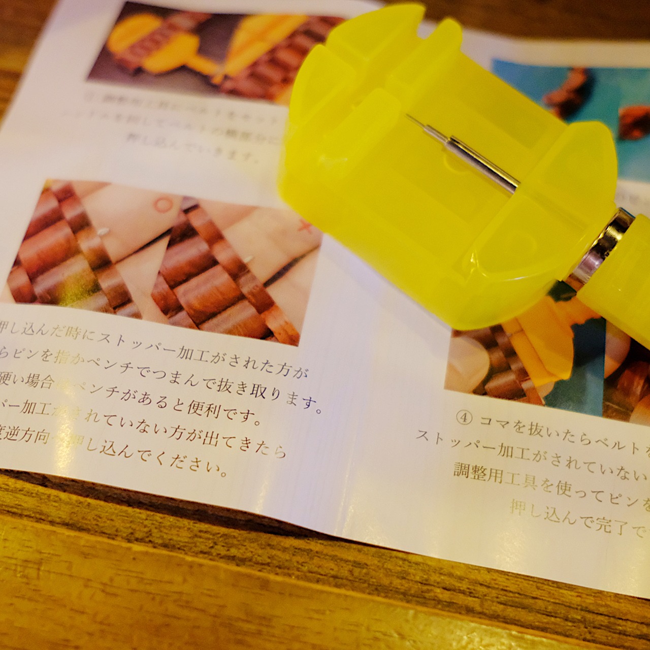 ■腕時計にはベルト調整用工具と説明書が付属してセルフにて調整。