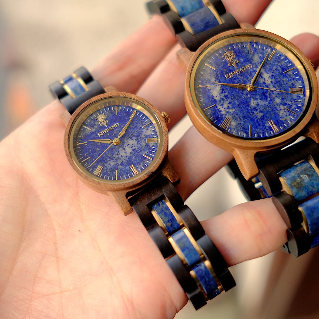 【ポンヌフオリジナル】日本製ウッドウォッチ EINBAND Reise ラピスラズリ文字盤×ラピスラズリバンド 木製腕時計 32mm クルミケース