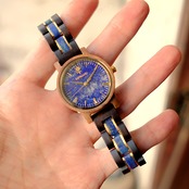 ※このモデルは特別にベルト部分にも贅沢にラピスラズリを使用しているため、その分天然木のみのベルトよりは重みがあります。