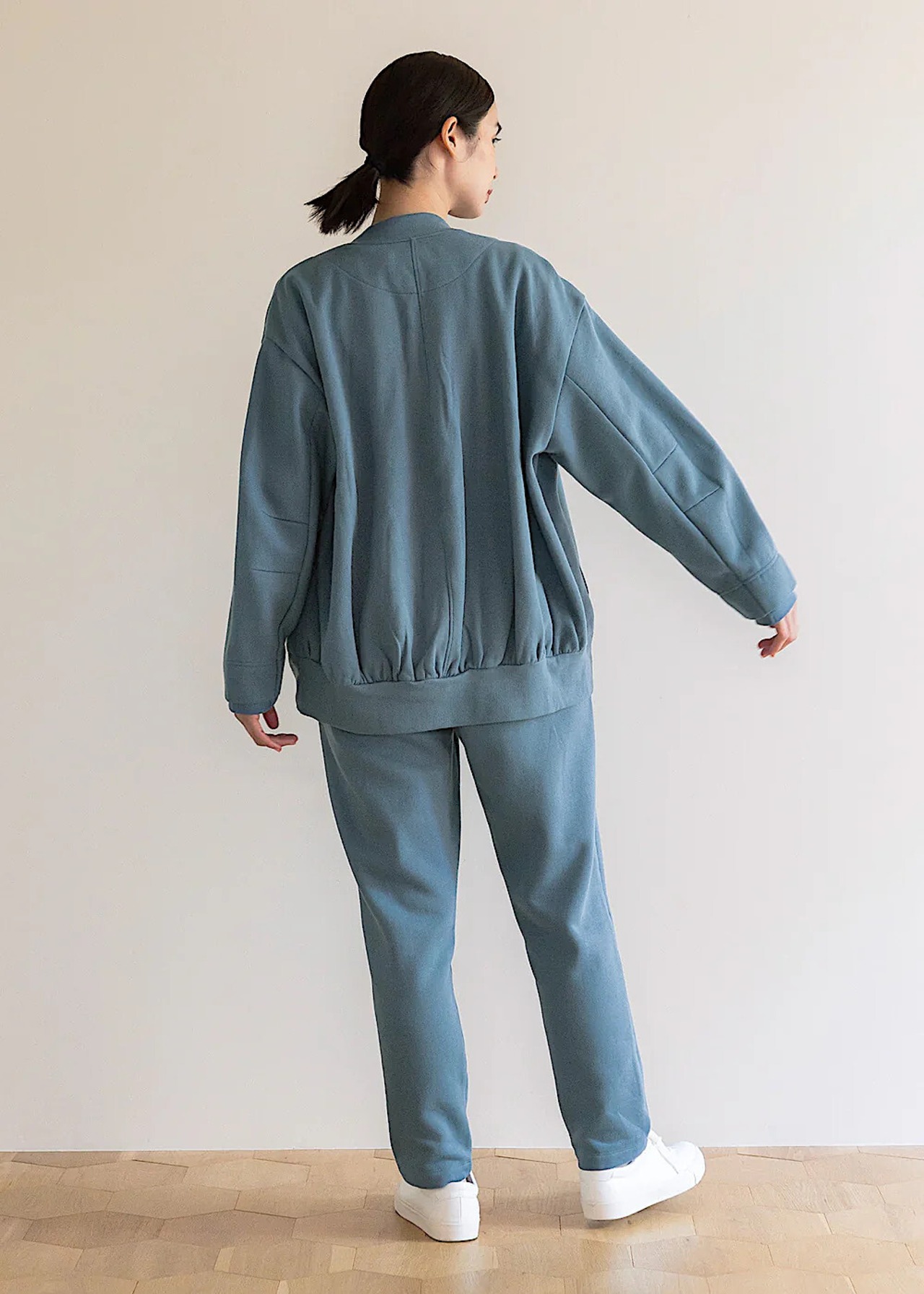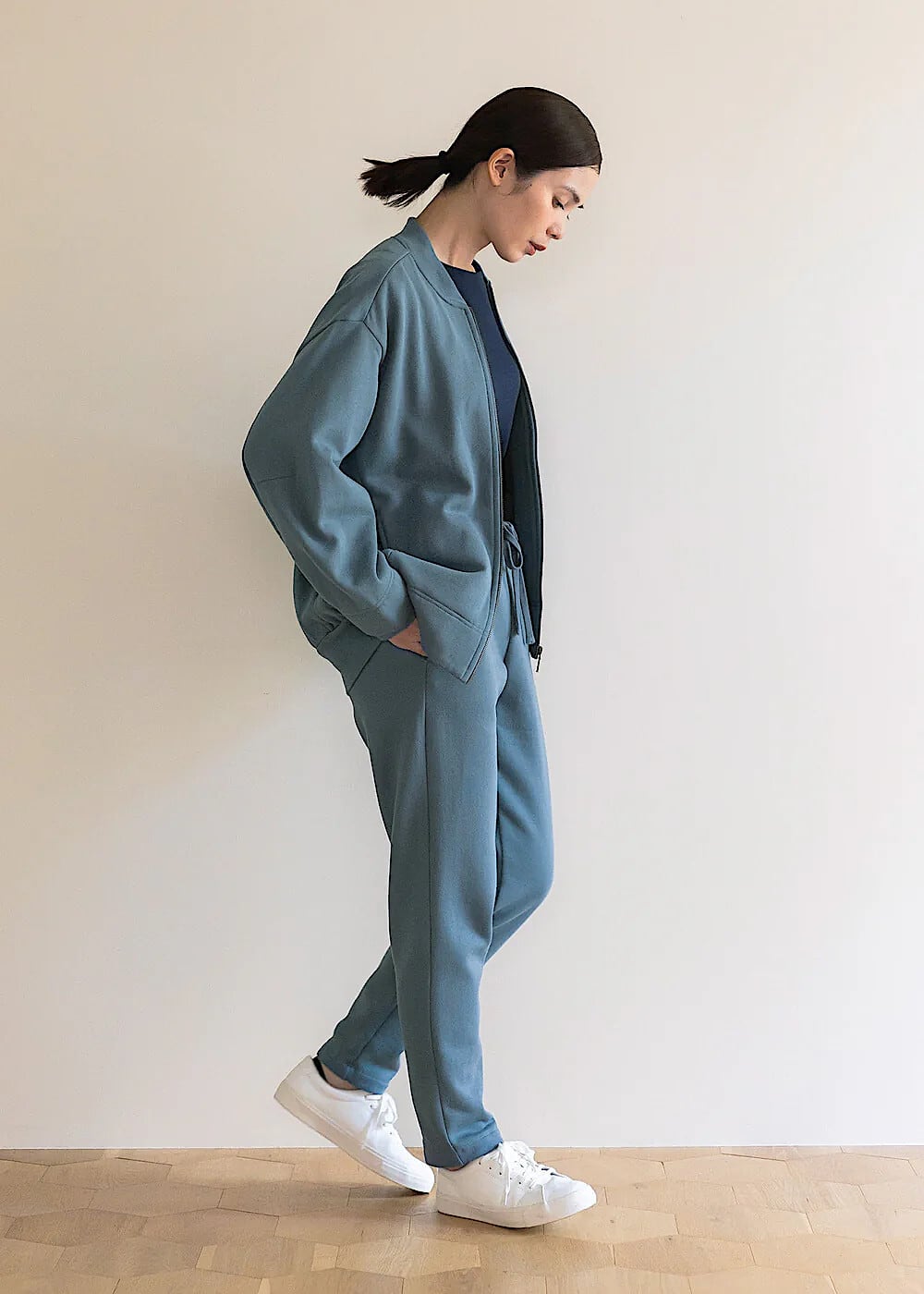 前あきはファスナー、襟はリブ素材でスッキリとしたスタンドカラー。