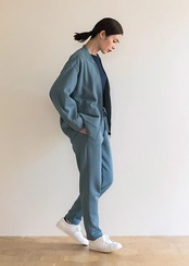 カジュアルに同素材のボトムスとセットアップにしても、スカートにも意外に合うのでコーディネートを楽しんで。