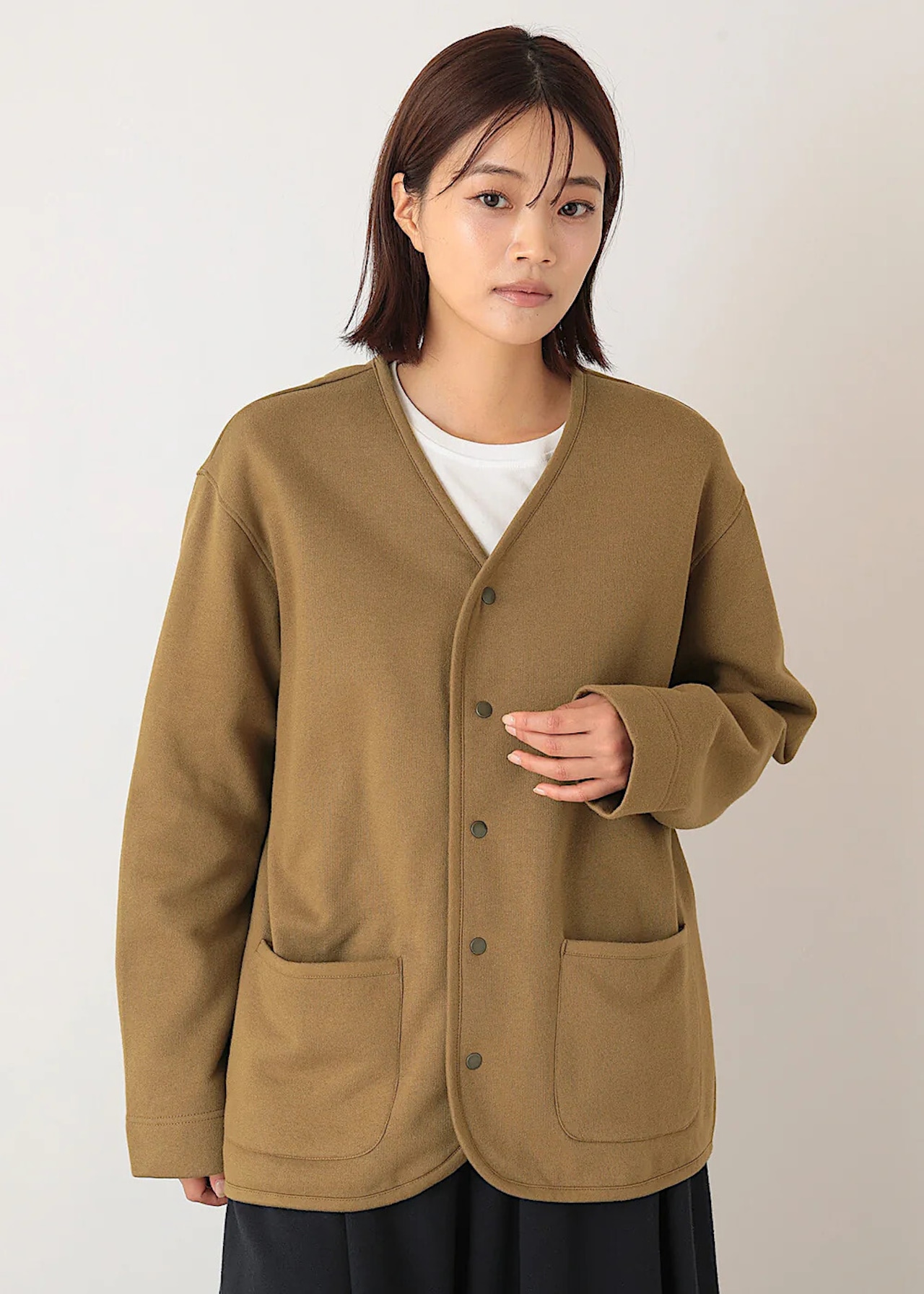 カーディガン感覚でさっと羽織れます。