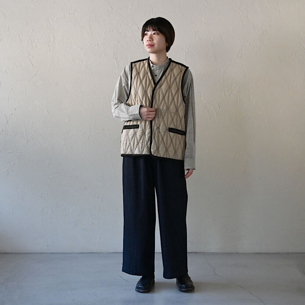 厚手ニットにも重ねられるので、秋冬に大活躍間違いなしの一枚です。
