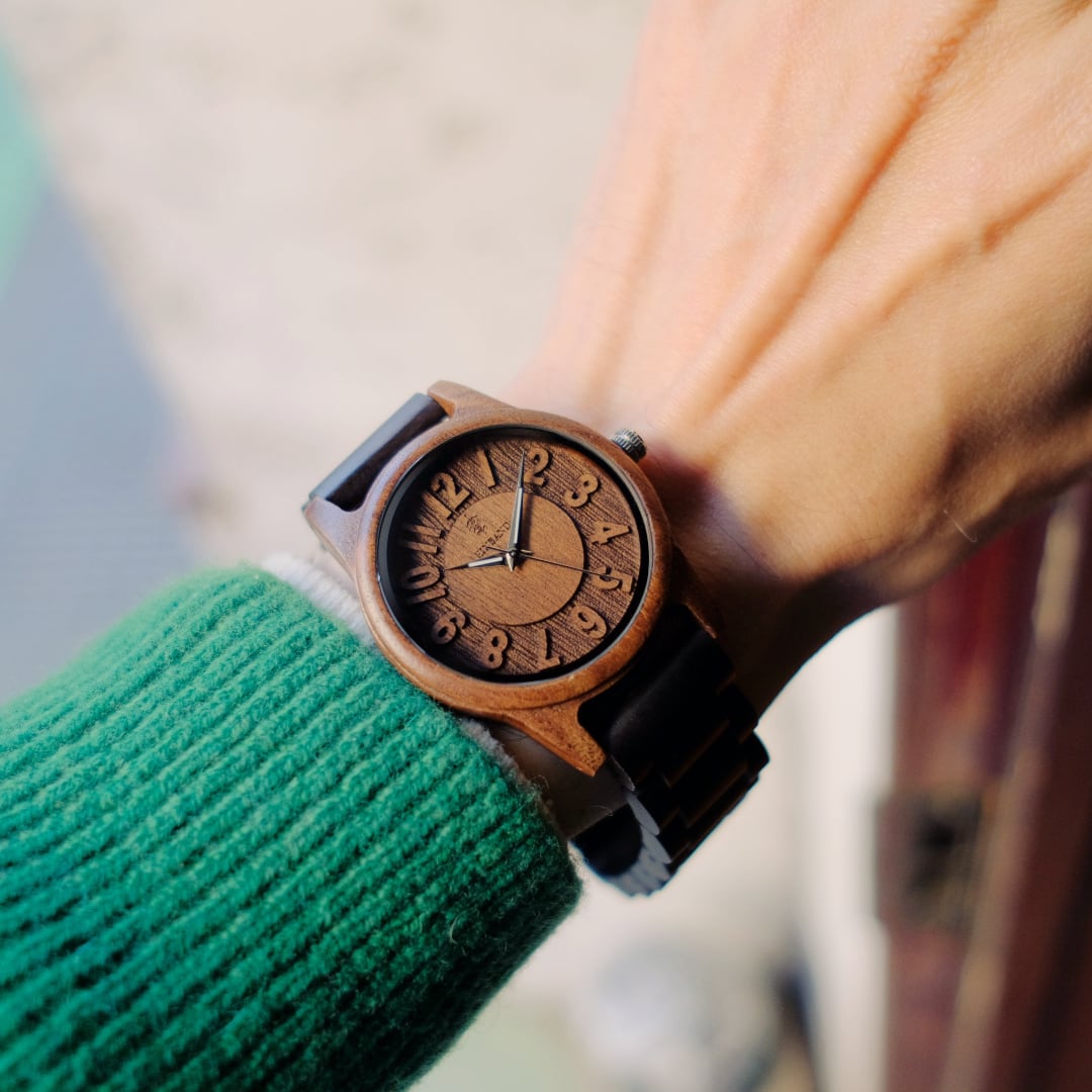 天然木から作られたウッドウォッチは金属アレルギーの方でもご安心してご使用いただけます。
