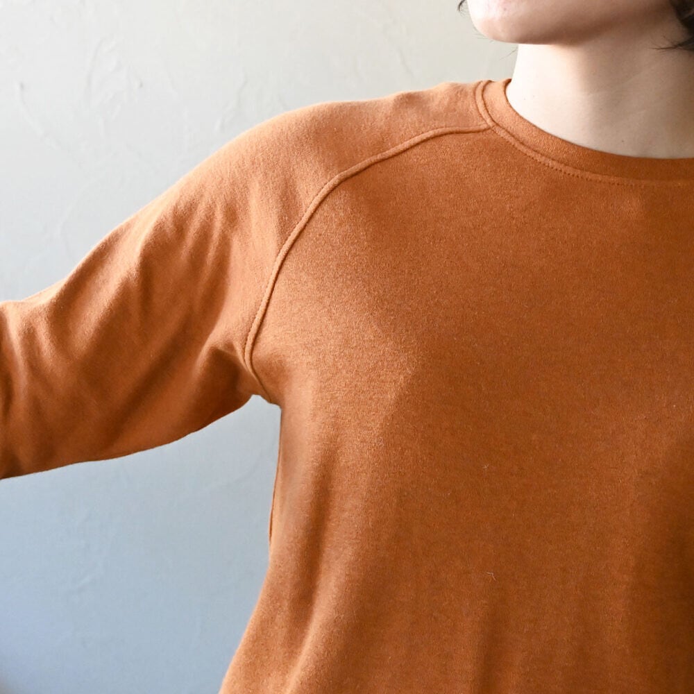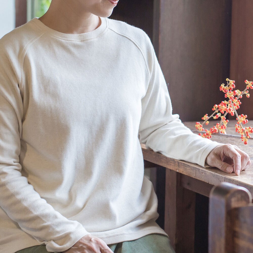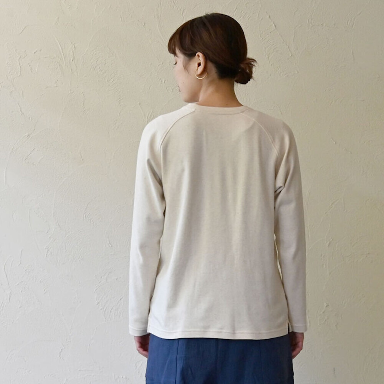 裾がやや長めでスリットが入り、秋冬はインナーとして、春夏は1枚で着ても。