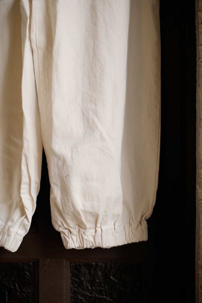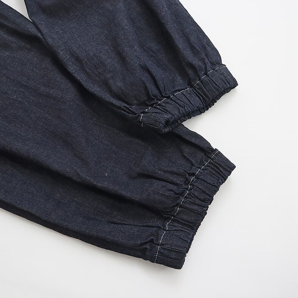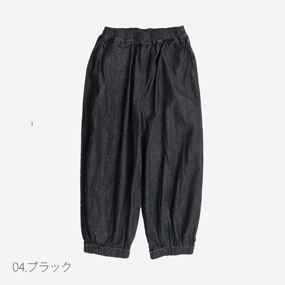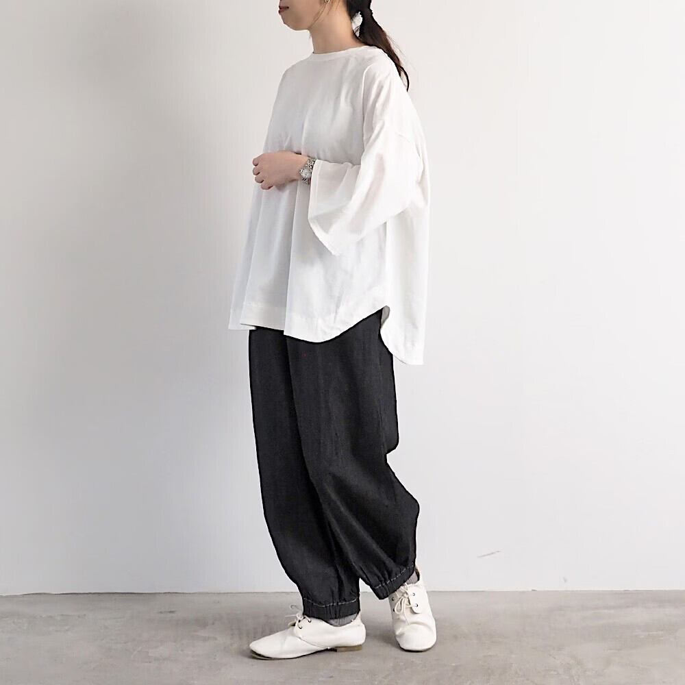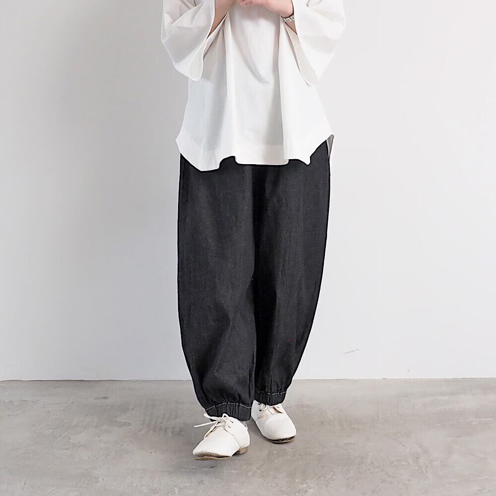 やわらかな8オンス(ライトオンス)の薄手ムラデニムで仕立てた、とても軽くて丸みのあるシルエットのポップパンツです。