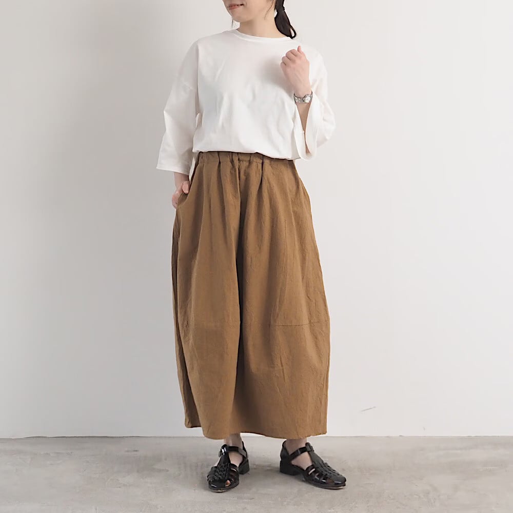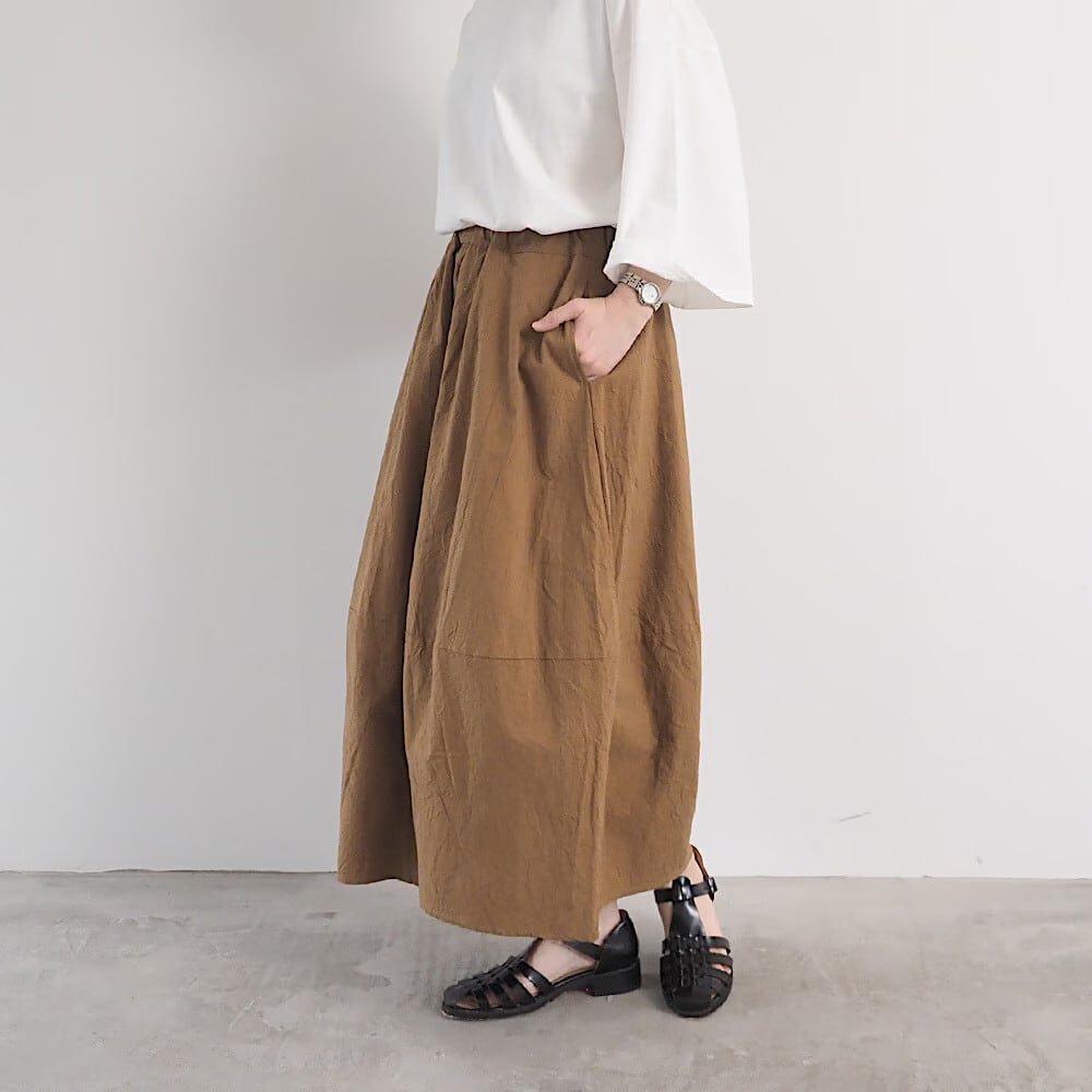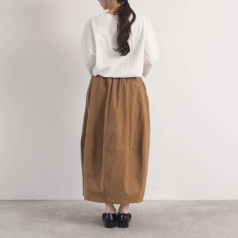 ふんわり包み込むエッグシルエットが特徴のシーチングハンドワッシャー エッグスカートです。