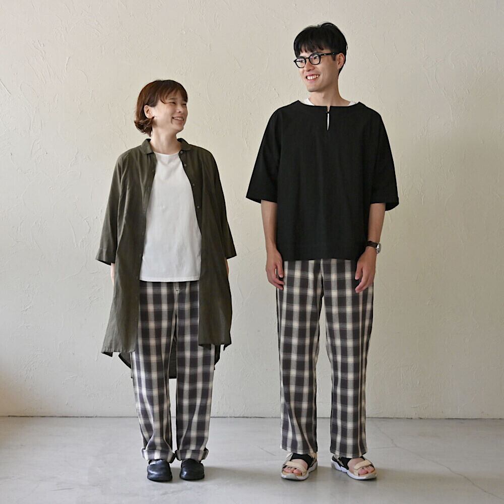 【オーガニックコットン100%】オンブレチェックイージーパンツ